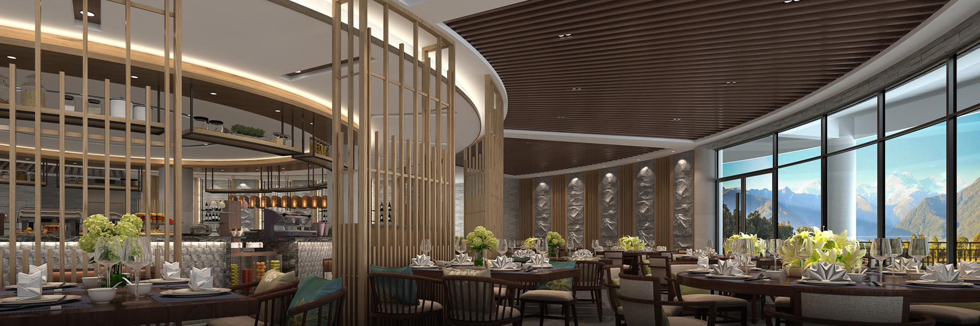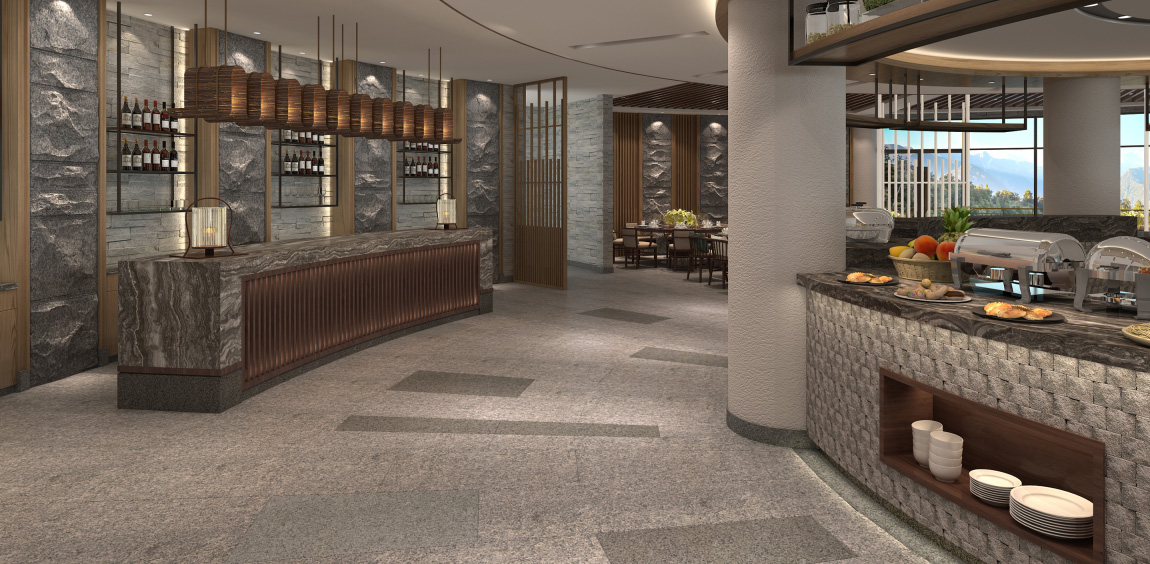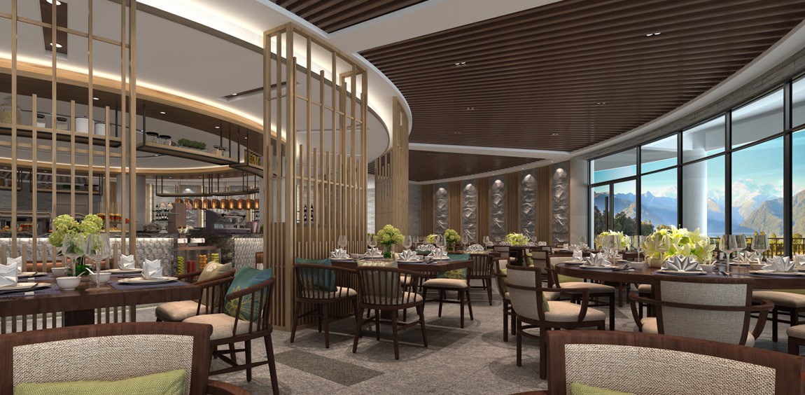 圆形餐厅位于温泉公园区内,餐厅的建筑色调柔和,洋溢着浓浓的东南亚风味,在此用餐令人心旷神怡,优雅中彰显尊贵,是一个让人身心放松的休闲场所,可亲临感受不同角度下温泉园区的美景。